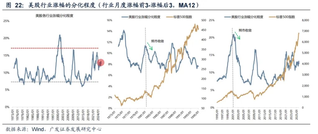 第一,行业分化角度:涨幅离散程度,不是有效的“离场”信号。