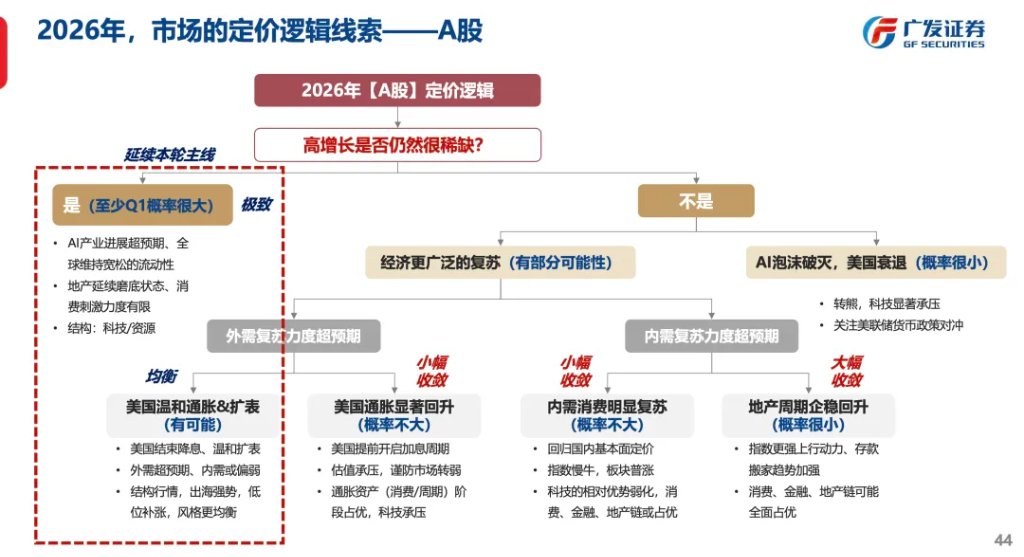 (4)2026年的定价逻辑线索:稀缺的高增长能不能持续(持续,则走向极致)->有没有更广泛复苏(有,则相对均衡)->复苏之下美国通胀是否可控(是,则走向均衡)->中国内需是否显著复苏(是,则走向收敛)。